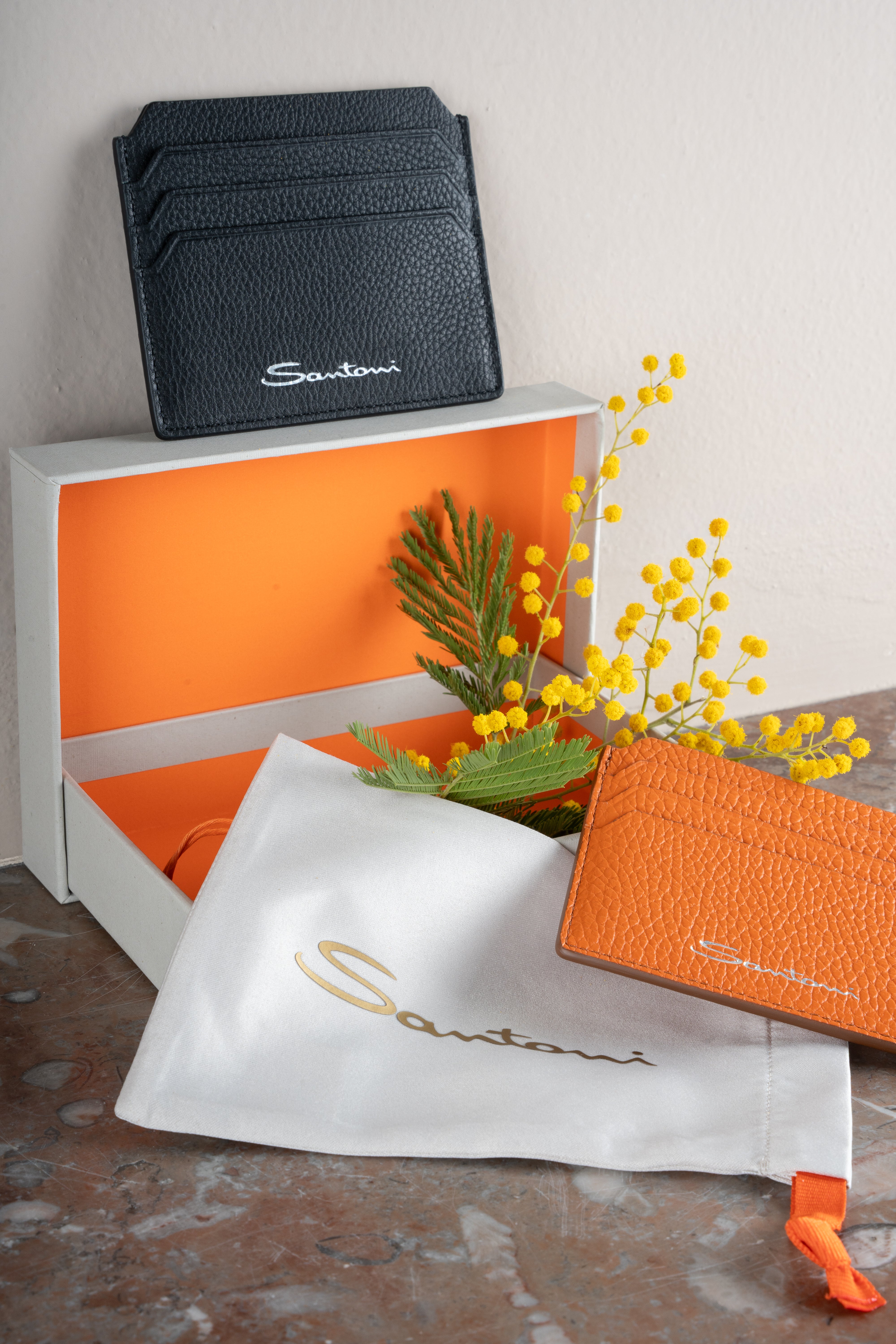 Santoni Pasjeshouder Oranje | Tumbled Leather