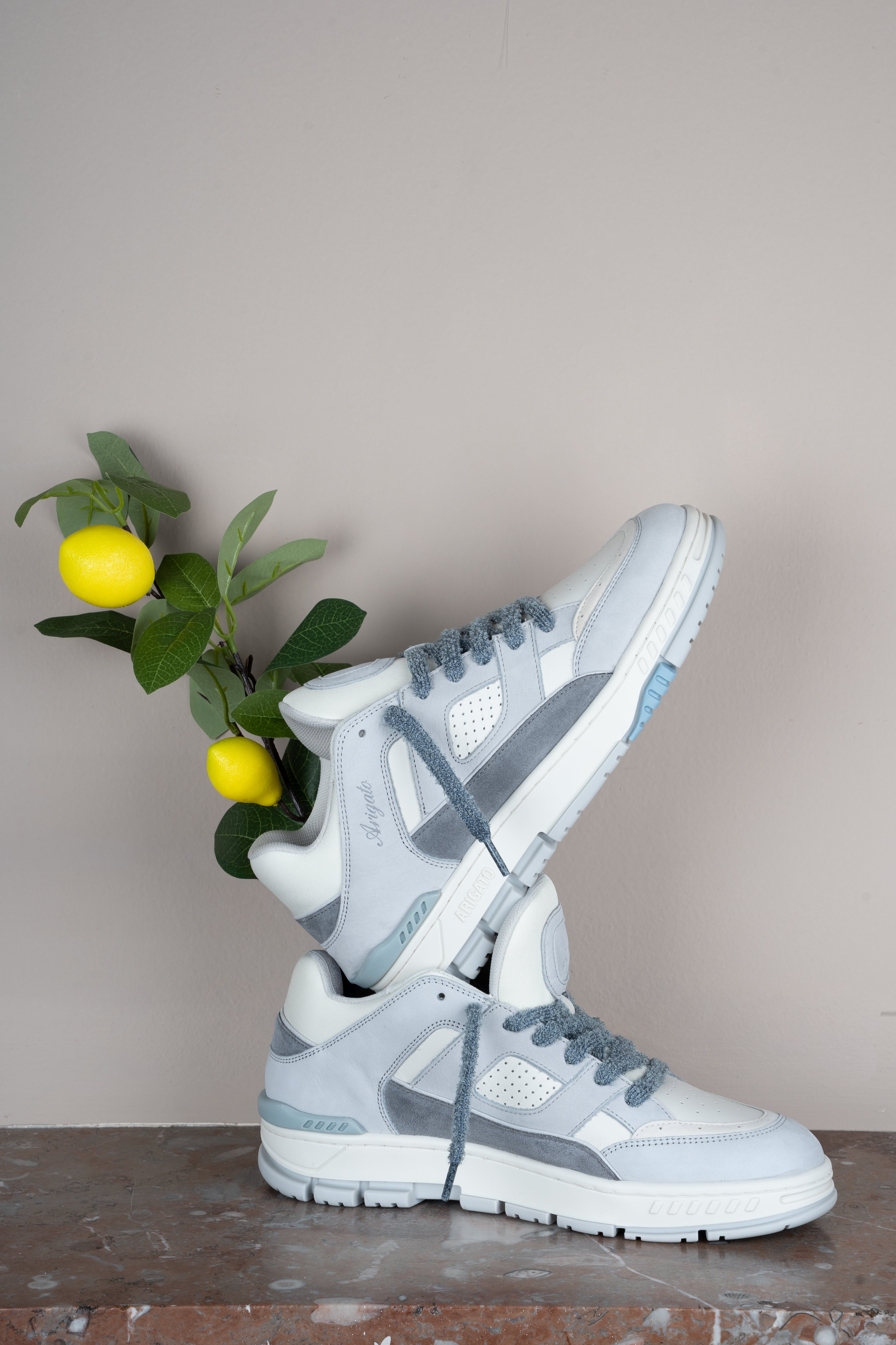 De off-white en taupe Axel Arigato Area Lo is een veelzijdige statement sneaker. Combineer hem met een lichte denim of tailored pantalon voor een moderne, cleane look. Ook perfect onder een relaxed fit jeans of short in het voorjaar en de zomer.